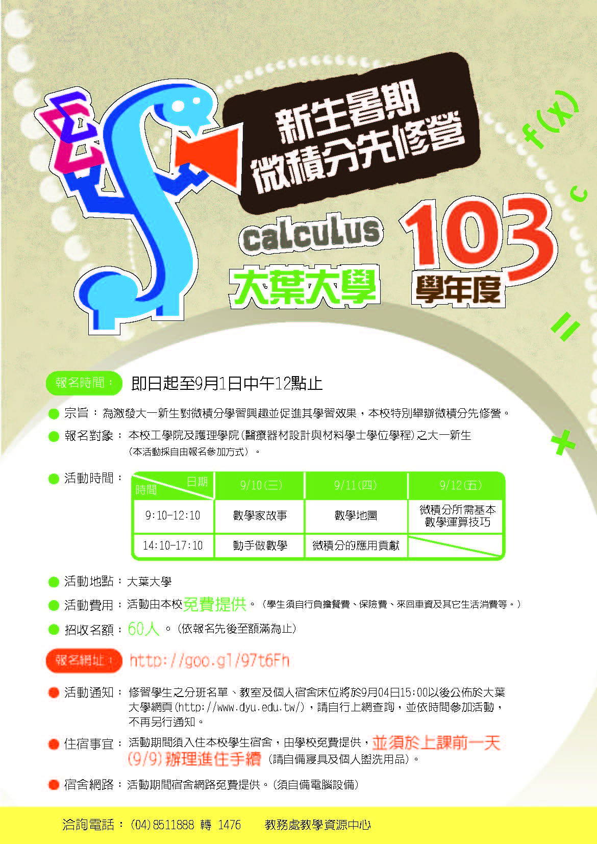 新生暑期微積分先修營活動DM預覽