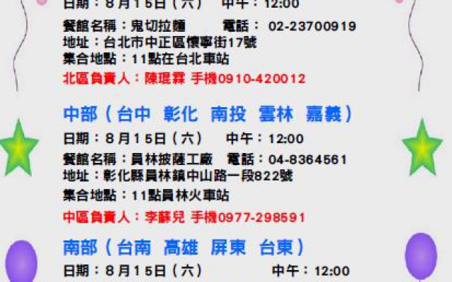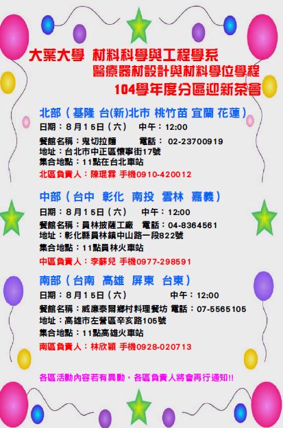2.8/15(六)舉辦北中南三區新生迎新茶會