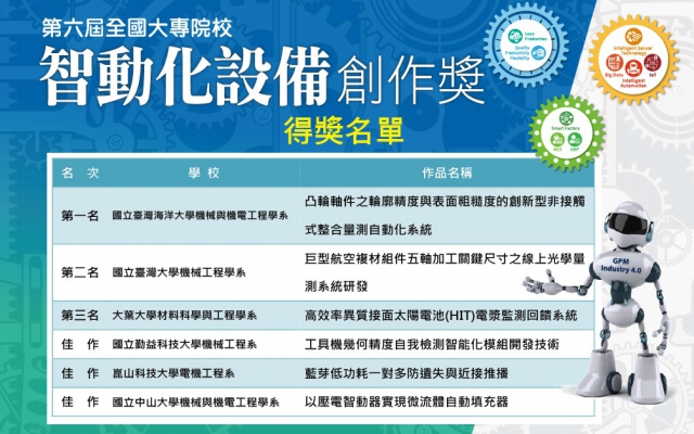 [新聞]大葉材料系連水養老師指導學生參與全國大專院校智動化設備創作競賽,榮獲第三名佳績!!