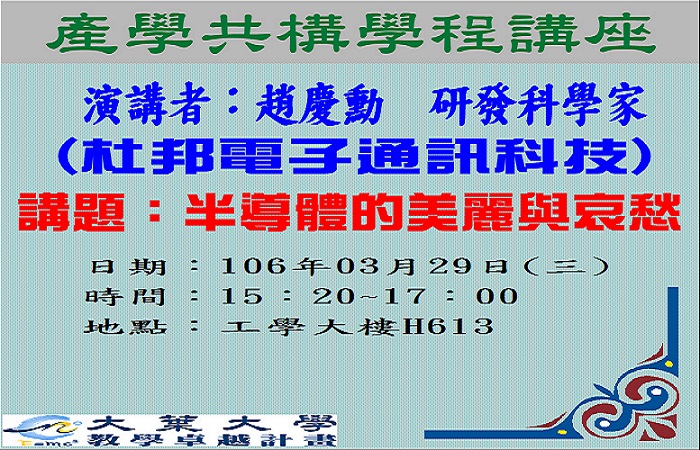 [活動]105-2產學共構專題演講-3/29邀請趙慶勳研發科學家蒞臨