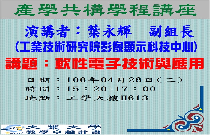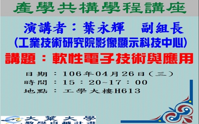 [活動]105-2產學共構專題演講-4/26邀請葉永輝副組長蒞臨