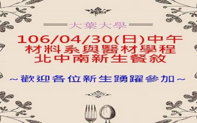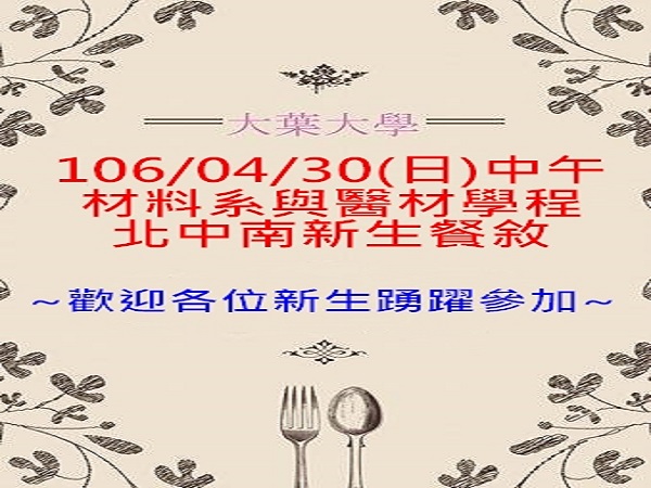 [活動]新增地點及報名網址~4/30(日)12:00午材料系與醫材學程舉辦106新生餐敘活動