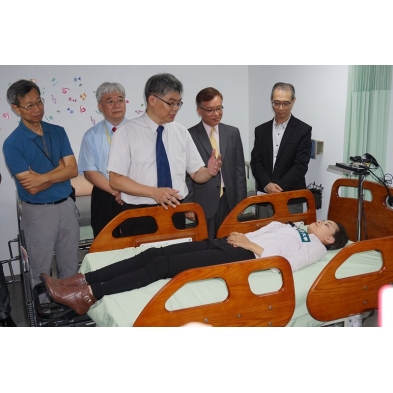 臺中榮總副院長呂炳榮指出,過去醫療輔具依賴國外進口,這次與大葉大學歷時一年共同研發的智慧病床,符合臺灣人體工學,並經臺中榮總人體實測,床墊受壓均勻、回彈率佳,躺在床上的病患也較容易翻身與下床,可節省醫療單位人力。
