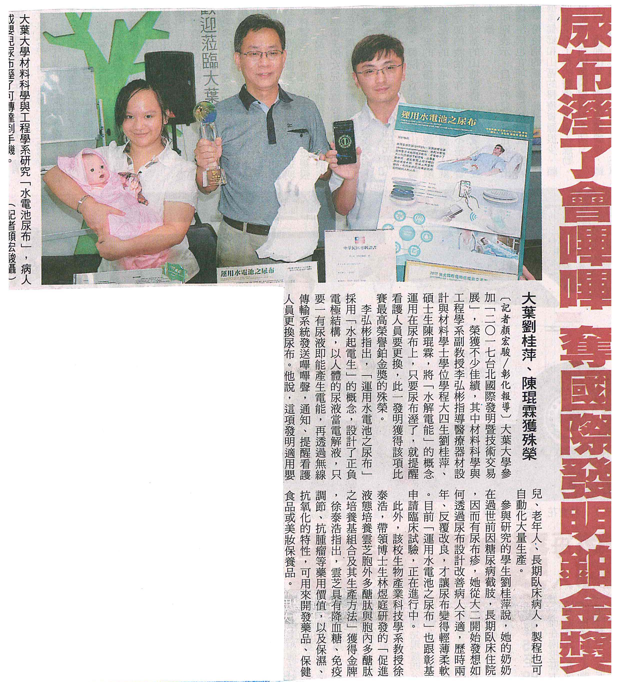 尿布濕了會嗶嗶 奪國際發明鉑金獎