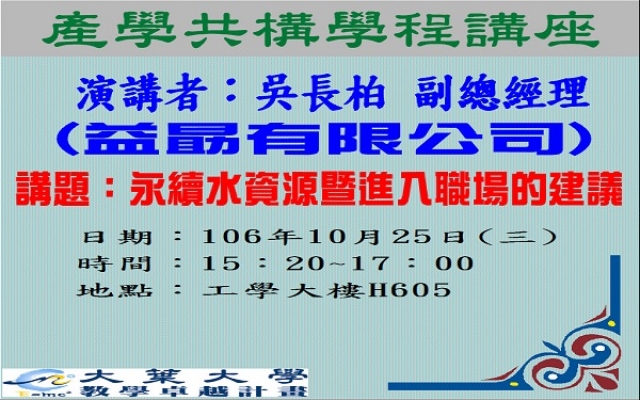 [活動]106-1產學共構專題演講-10/25邀請吳長柏副總(益勗有限公司)蒞臨
