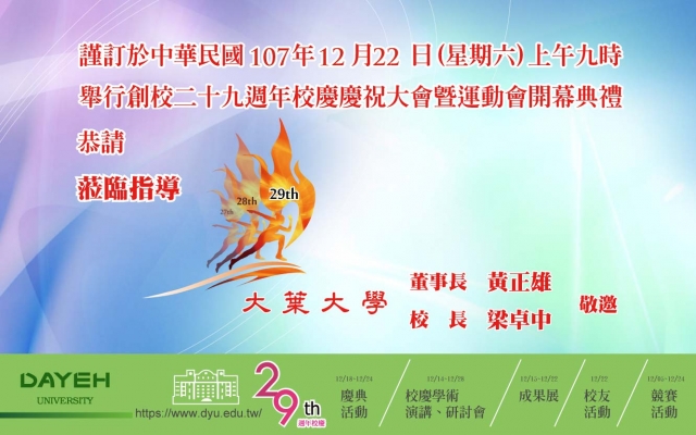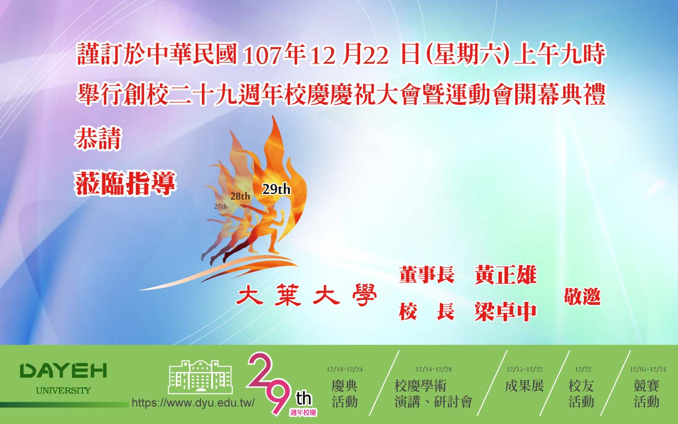 大葉大學29週年校慶慶祝活動,歡迎大家共襄盛舉。