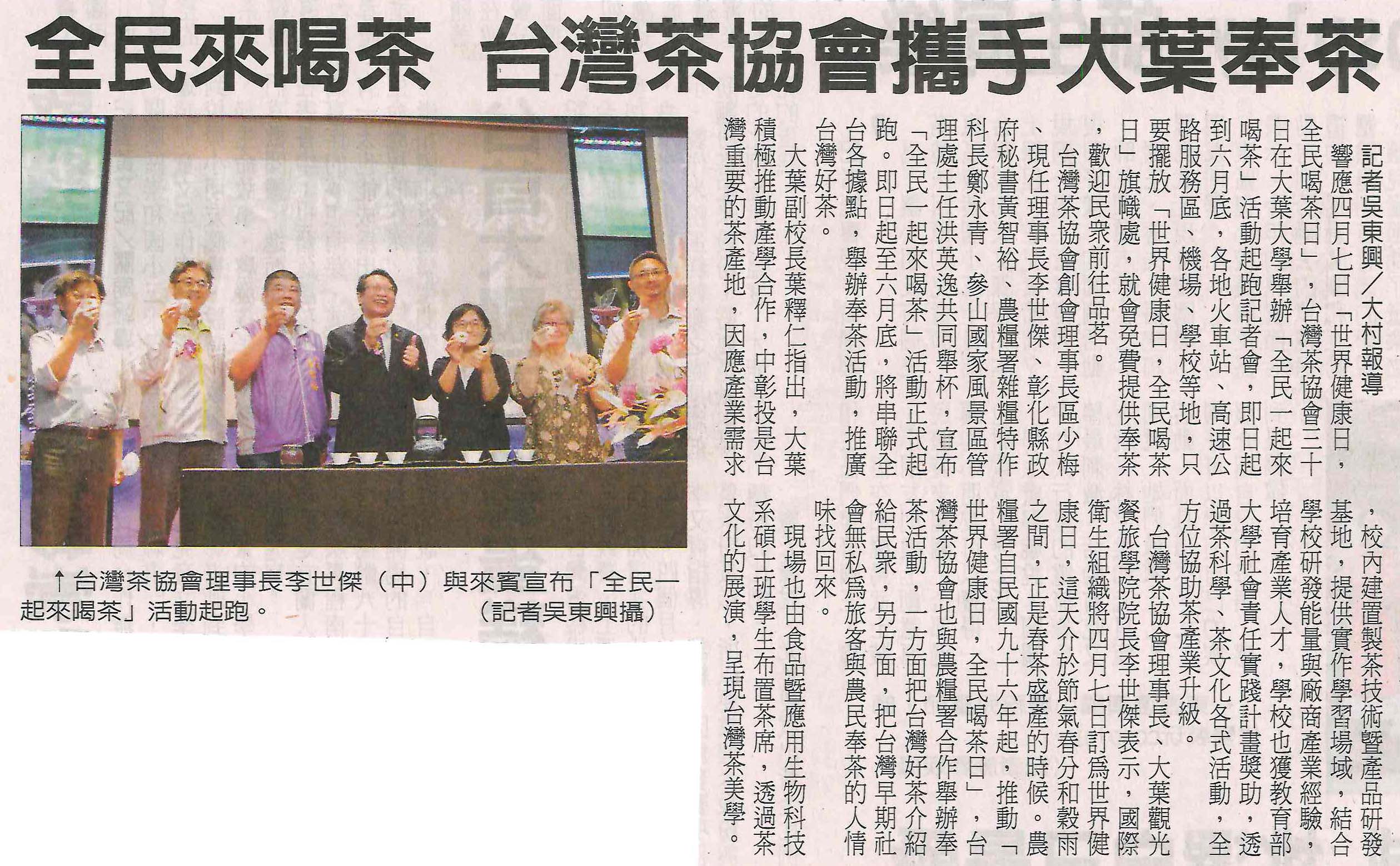 全民來喝茶 台灣茶協會攜手大葉奉茶