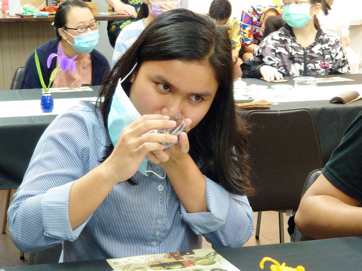 食品暨應用生物科技學系副教授林芳儀為學員講解茶文化,從臺灣茶的分布談起,介紹臺灣常見茶種,並布置了優美的茶席環境,讓境外學生實際體驗品茶的禮儀和細節。