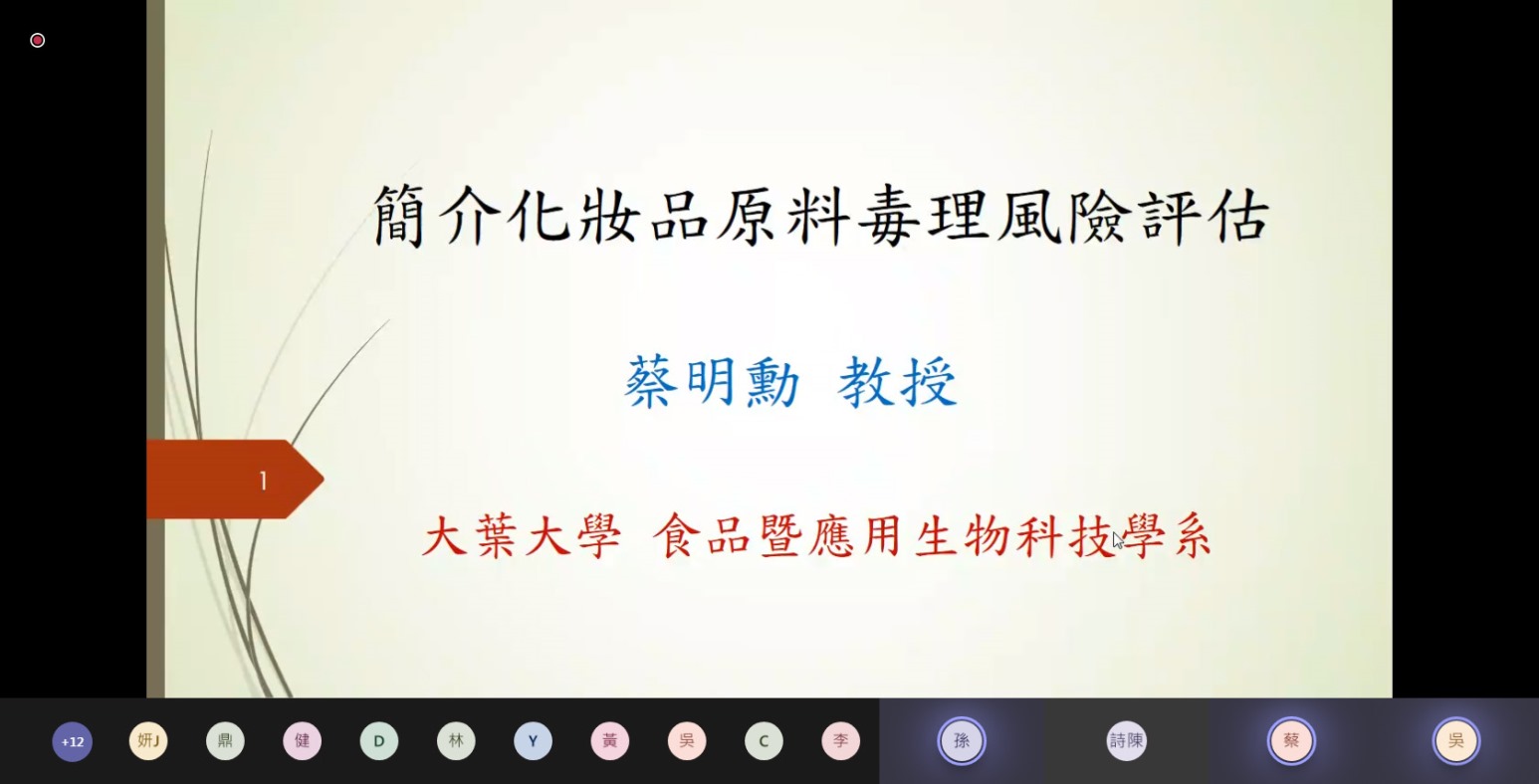 大葉大學創新育成中心為協助廠商汲取新知、迎戰後疫情時代,7月份推出一系列健康美麗產業學習線上論壇,今(12日)以「生技/化粧品/食品業者之原料毒理評估」為主題,邀請大葉大學研發處學術研究組蔡明勳組長、食品暨應用生物科技學系孫芳君主任,帶領學員一探毒理學的世界。