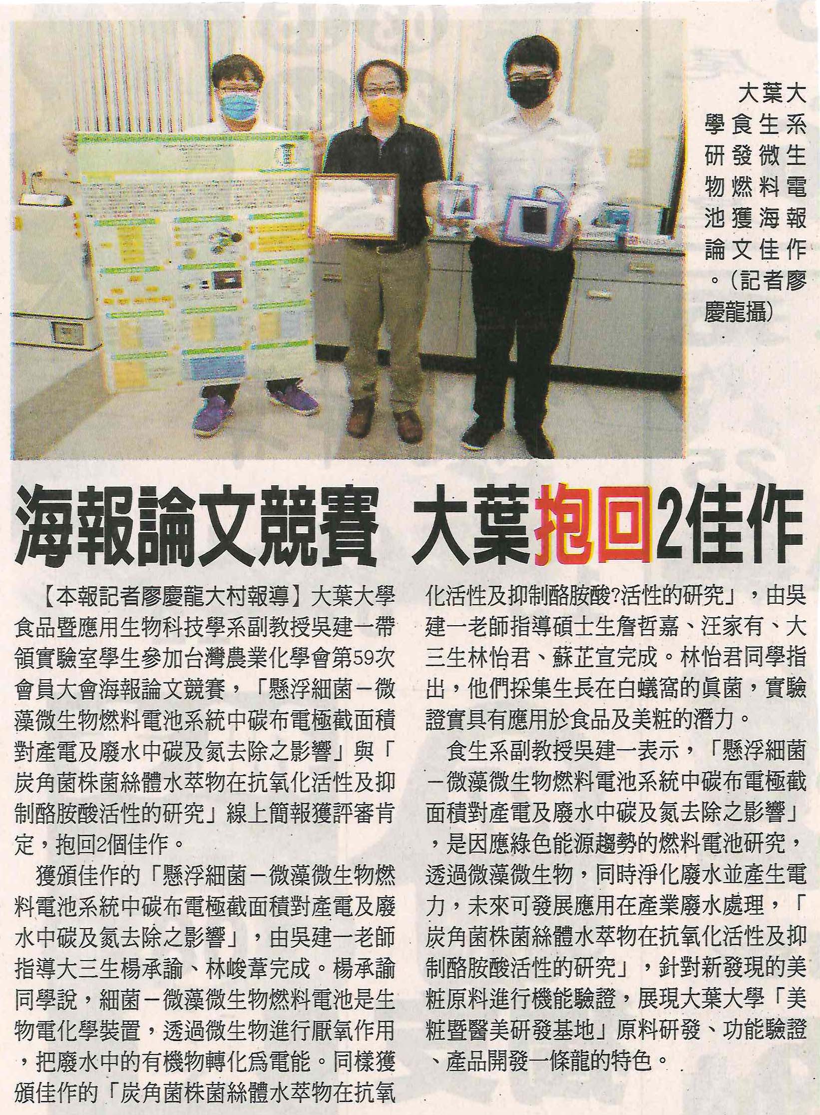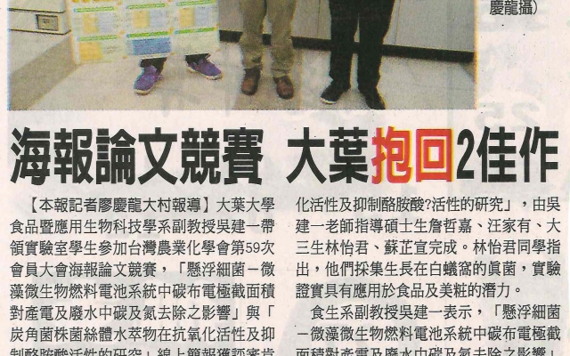 下一則:台灣農業化學會海報論文競賽 大葉獲2佳作