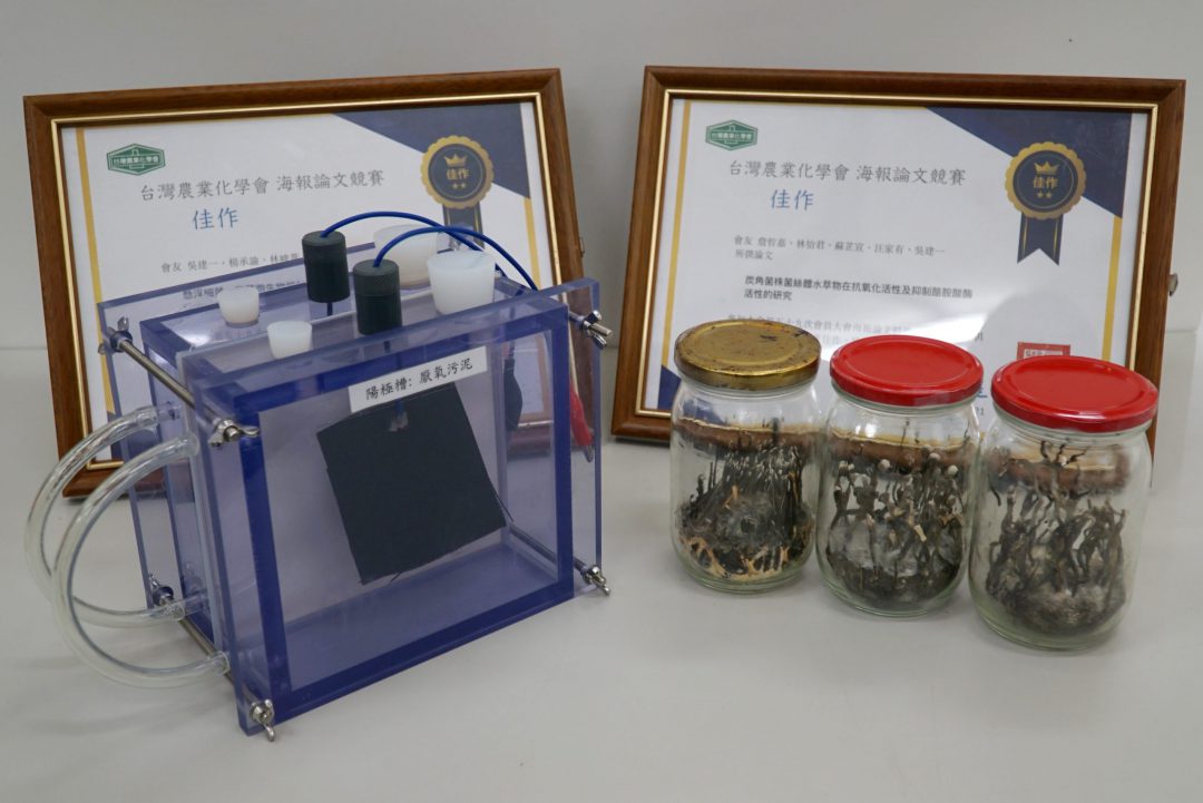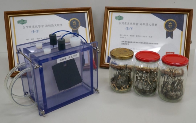 【私校電子報】 大葉大學食品暨應用生物科技學系副教授吳建一指導學生參加台灣農業化學會海報論文競賽,「懸浮細菌-微藻微生物燃料電池系統中碳布電極截面積對產電及廢水中碳及氮去除之影響」與「炭角菌株菌絲體水萃物在抗氧化活性及抑制酪胺酸?活性的研究」2組作品獲佳作。