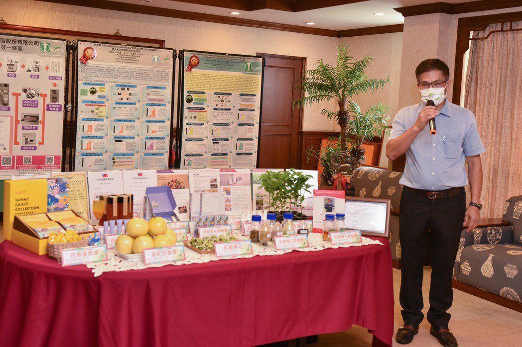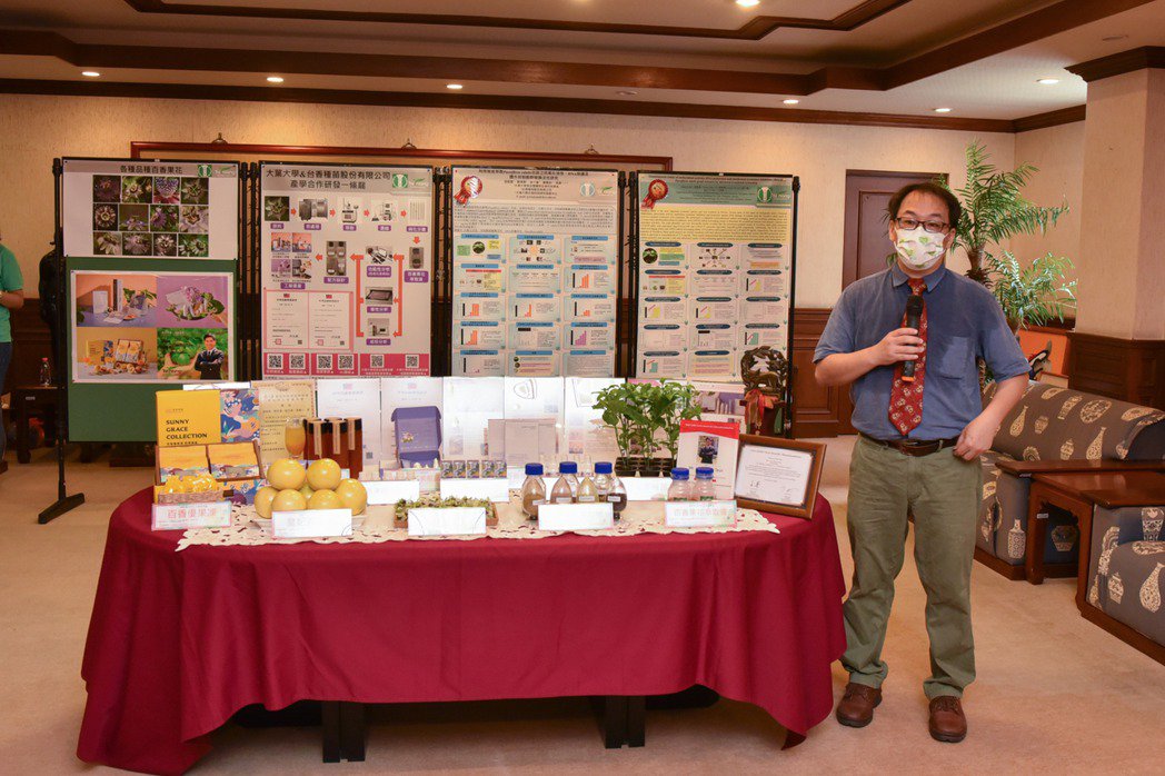 台香種苗總經理劉千臺說,台香種苗進駐大葉大學創新育成中心,雙方產學合作成果豐碩,先後獲頒國際化粧品科技研討會暨技術交流展示會論文第三名、化粧品技術創新研討會壁報論文第三名、火炬國際化獎等獎項肯定,並取得百香果花之萃取物在面膜美白的新型專利,以及製備百香果花萃取物的發明專利。百香果花產品曾獲彰化縣政府SBIR小型企業創新研發計畫補助,台香種苗也在大葉大學的輔導下,通過新年度的彰化縣政府SBIR計畫,未來將進一步開發百香果種籽附加價值。