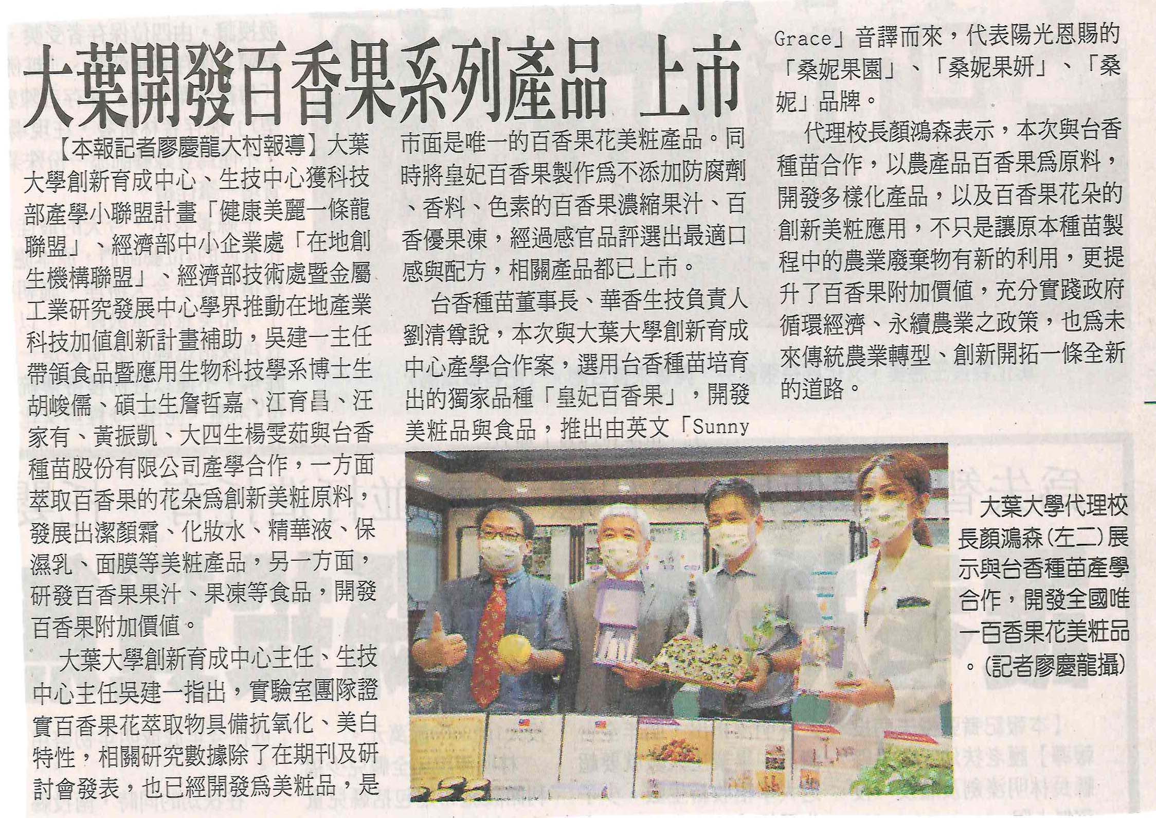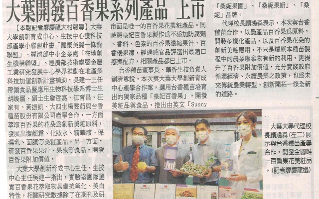 下一則:大葉大學攜台香種苗 首創百香果花美粧品、健康飲品