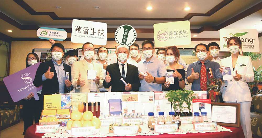 台香種苗總經理劉千臺說,百香果花產品曾獲彰化縣政府SBIR小型企業創新研發計畫補助,該公司也在大葉大學的輔導下,未來將進一步進行百香果種籽附加價值的開發。