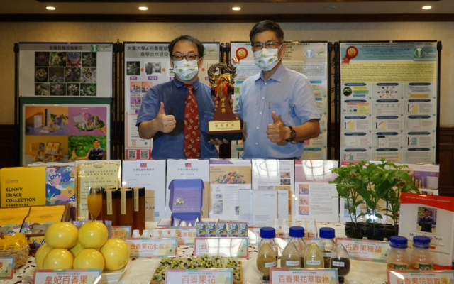 台香種苗總經理劉千臺說,台香與大葉大學產學合作成果豐碩,先後獲頒國際化粧品科技研討會暨技術交流展示會論文第三名、化粧品技術創新研討會壁報論文第三名、火炬國際化獎等獎項肯定,並取得百香果花萃取物在面膜美白的新型專利,及製備百香果花萃取物的發明專利。
