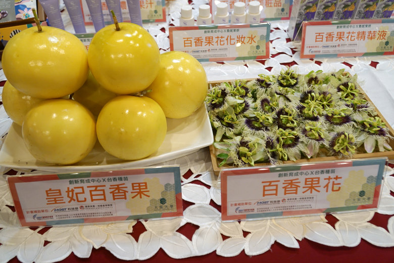 百香果除了可以鮮食,您知道嗎?百香果花也能做成美粧原料!大葉大學與百香果種苗產學合作,開發一系列「百香果」花朵等美粧產品,開發百香果附加價值,週一(30日)舉行產品發表會。