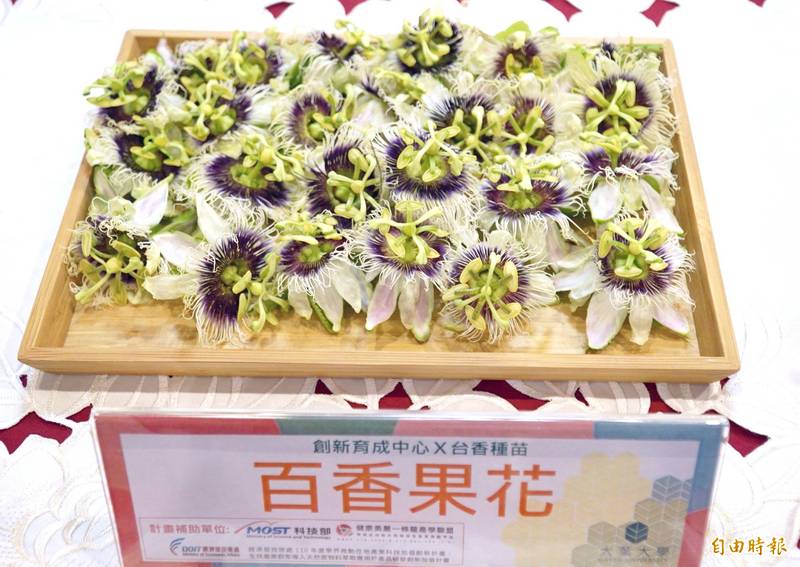 大葉大學創新育成中心、生技中心主任吳建一表示,花卉應用開發化妝品並不少,例如玫瑰等,主要是花卉多含有大量花青素、多酚與類黃酮,具美白、抗氧化等效能,在國外也有研究,百香果花具有該元素,相當適合開發化妝品,不過卻鮮少在市面看見相關產品,主要就是因為花朵的量太少,台香種苗場培育面積廣,每年因疏果剪下的百香果花不計其數,具有投入生產的經濟效益,成為目前市面上唯一的百香果花美粧產品,今日首度對外發表。