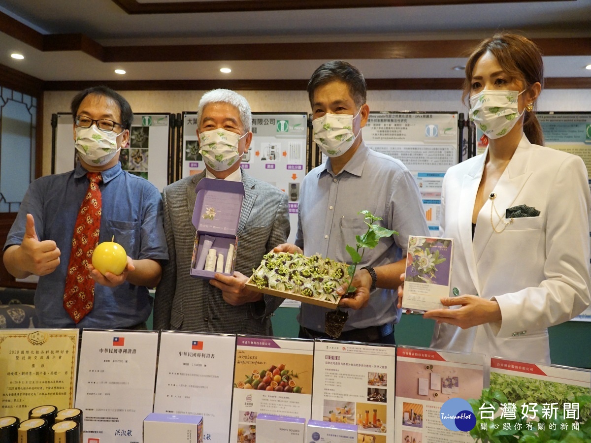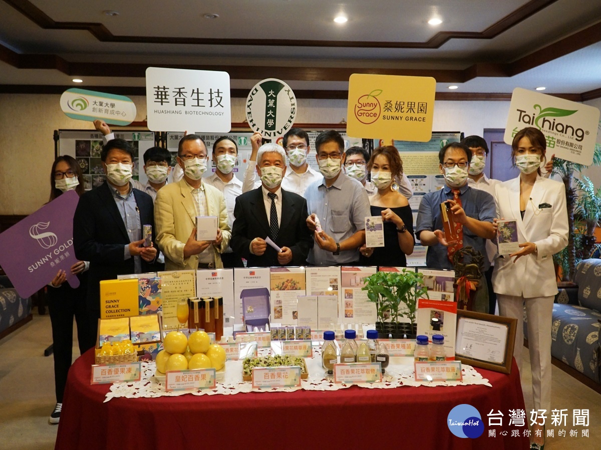 台香種苗總經理劉千臺說,台香種苗進駐大葉大學創新育成中心,雙方產學合作成果豐碩,先後獲頒國際化粧品科技研討會暨技術交流展示會論文第三名、化粧品技術創新研討會壁報論文第三名、火炬國際化獎等獎項肯定,並取得百香果花之萃取物在面膜美白的新型專利,以及製備百香果花萃取物的發明專利。百香果花產品曾獲彰化縣政府SBIR小型企業創新研發計畫補助,台香種苗也在大葉大學的輔導下,通過新年度的彰化縣政府SBIR計畫,未來將進一步開發百香果種籽附加價值。