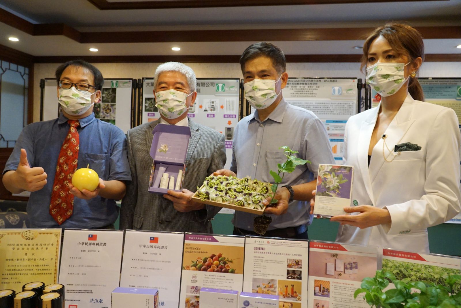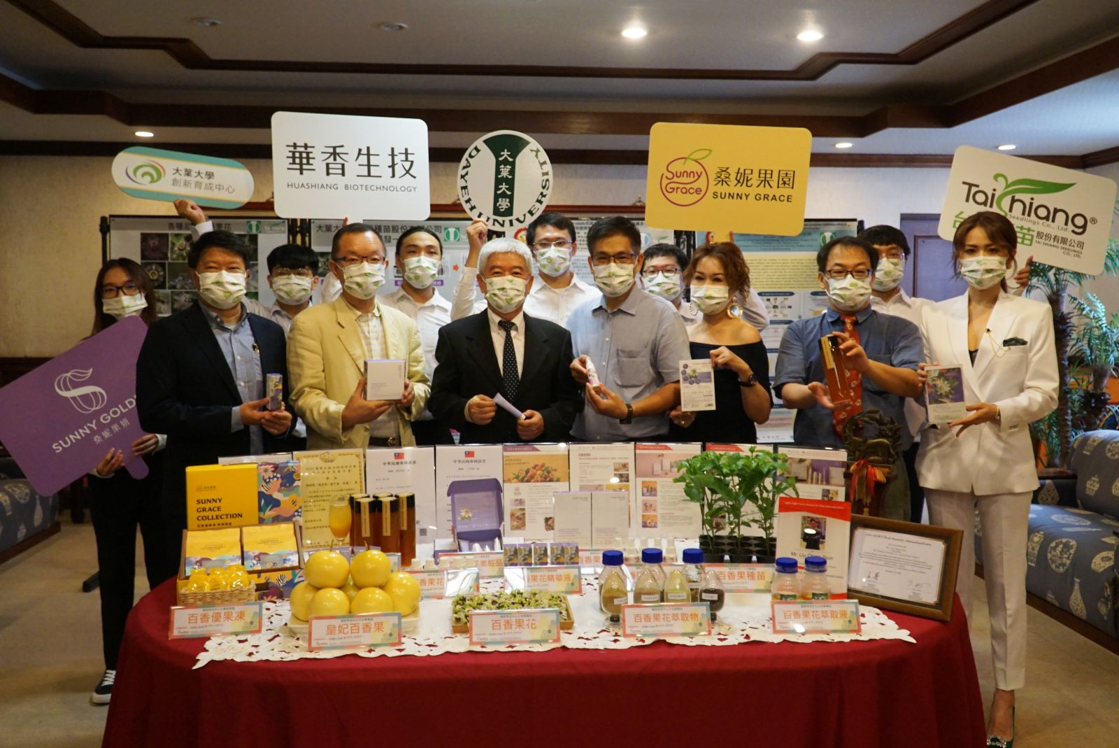 台香種苗總經理劉千臺說,台香與大葉大學產學合作成果豐碩,先後獲頒國際化粧品科技研討會暨技術交流展示會論文第三名、化粧品技術創新研討會壁報論文第三名、火炬國際化獎等獎項肯定,並取得百香果花萃取物在面膜美白的新型專利,及製備百香果花萃取物的發明專利。