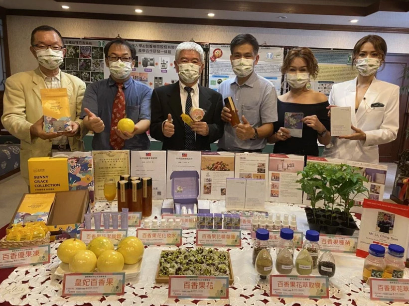 台香董事長、華香生技負責人劉清尊說,台香種苗以科技化設備與智慧溫室培養高品質、無病毒的百香果嫁接苗,嫁接技術曾獲神農獎肯定,無病毒的種苗也受到各國青睞,以出口東南亞國家為大宗,更是亞洲唯一獲得祕魯官方認證的百香果苗圃廠商,近年來也希望優質農產品能開發多元化應用,此次與大葉大學創新育成中心產學合作案,是選用台香種苗培育出的獨家品種「皇妃百香果」開發美粧品與食品。
