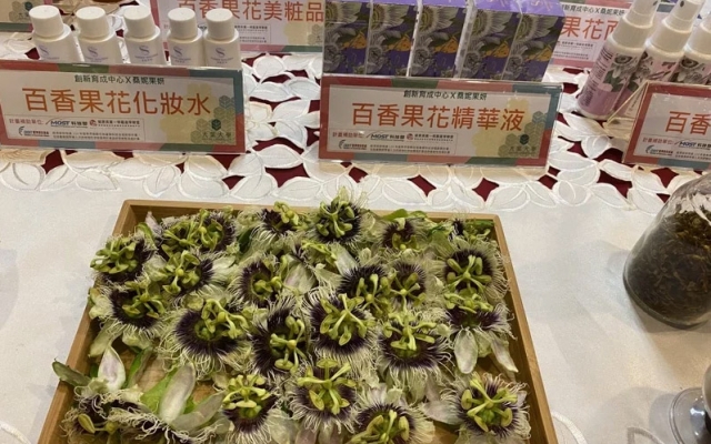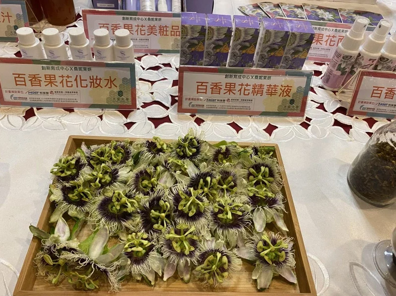 彰化縣大葉大學創新育成中心、生技中心與國內百香果種苗大王台香種苗公司產學合作,將原本要丟棄的花朵做為創新美粧原料,育成中心主任吳建一說,這是全世界第一個用百香果花萃取物做成美粧產品,讓農業廢棄物加值再利用,也能落實綠色循環經濟。