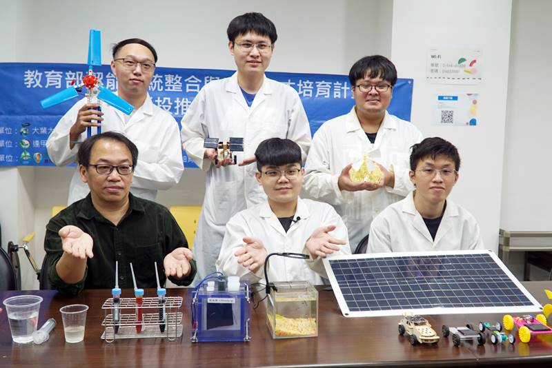 食生系碩士生詹哲嘉說,實驗室有太陽能、燃料電池等綠能研究成果,現代人喜歡養魚,觀賞魚需要光源,他們利用太陽能提供電力,供應水族箱照明。大四生楊承諭說,實驗室準備了「電精靈寶寶」體驗活動,讓民眾運用海藻酸鈉、氯化鈣等材料製作燃料電池中的固定化微生物顆粒。
