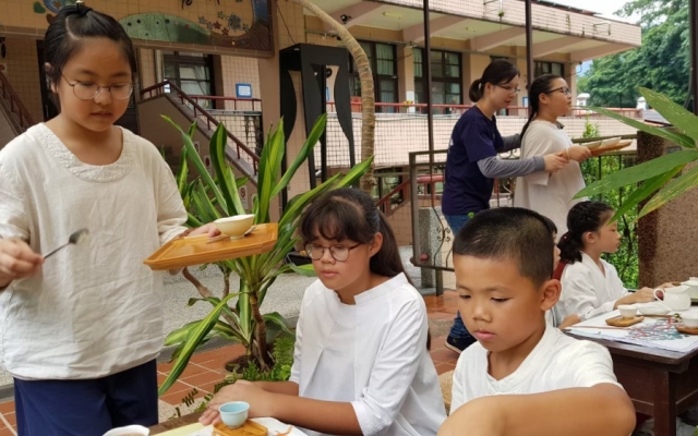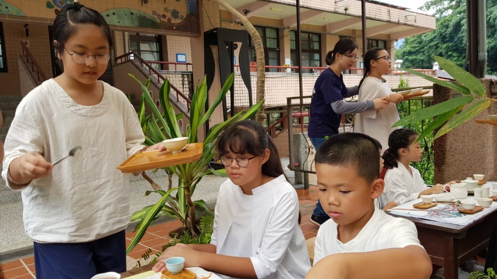 瑞竹國小初階茶藝培訓課程,教小朋友認識茶歷史、茶樹種植、製茶和泡茶,中階課程讓孩子學習各朝代茶藝文化,搭配竹藝與書法,拓展文創面向,施校長也帶領學童到大葉大學和故宮南院展示泡茶方法,將茶文化推廣出去。