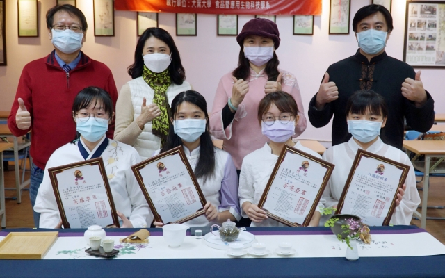 大葉大學食品暨應用生物科技學系深耕茶產業人才培育,李世傑教授與許文光助理教授帶領學生參加高雄市政府、高雄市新商業會指導,中華藝能文創產業工會、高雄市玉泉茶協會等單位共同主辦的「2022金執獎」,勇奪大專組茶藝冠軍、茶湯亞軍、茶席季軍,並獲頒精神總錦標。