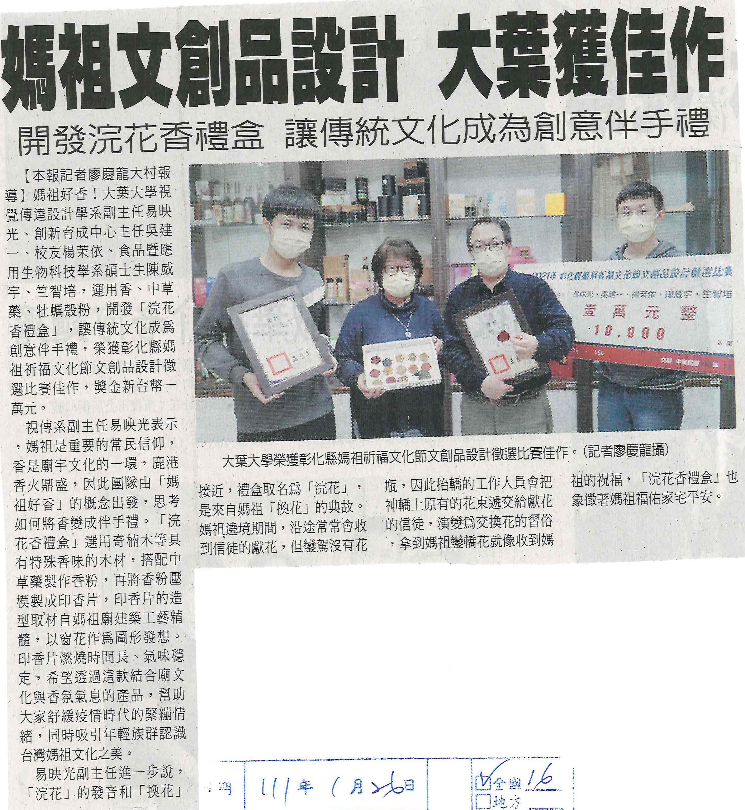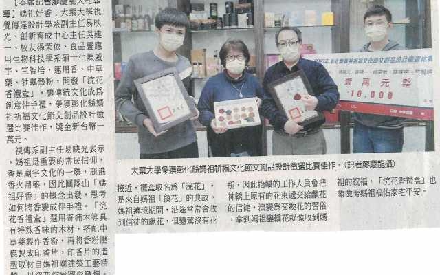 下一則:大葉大學讓傳統文化變創意伴手禮 獲彰化縣媽祖祈福文化節設計佳作