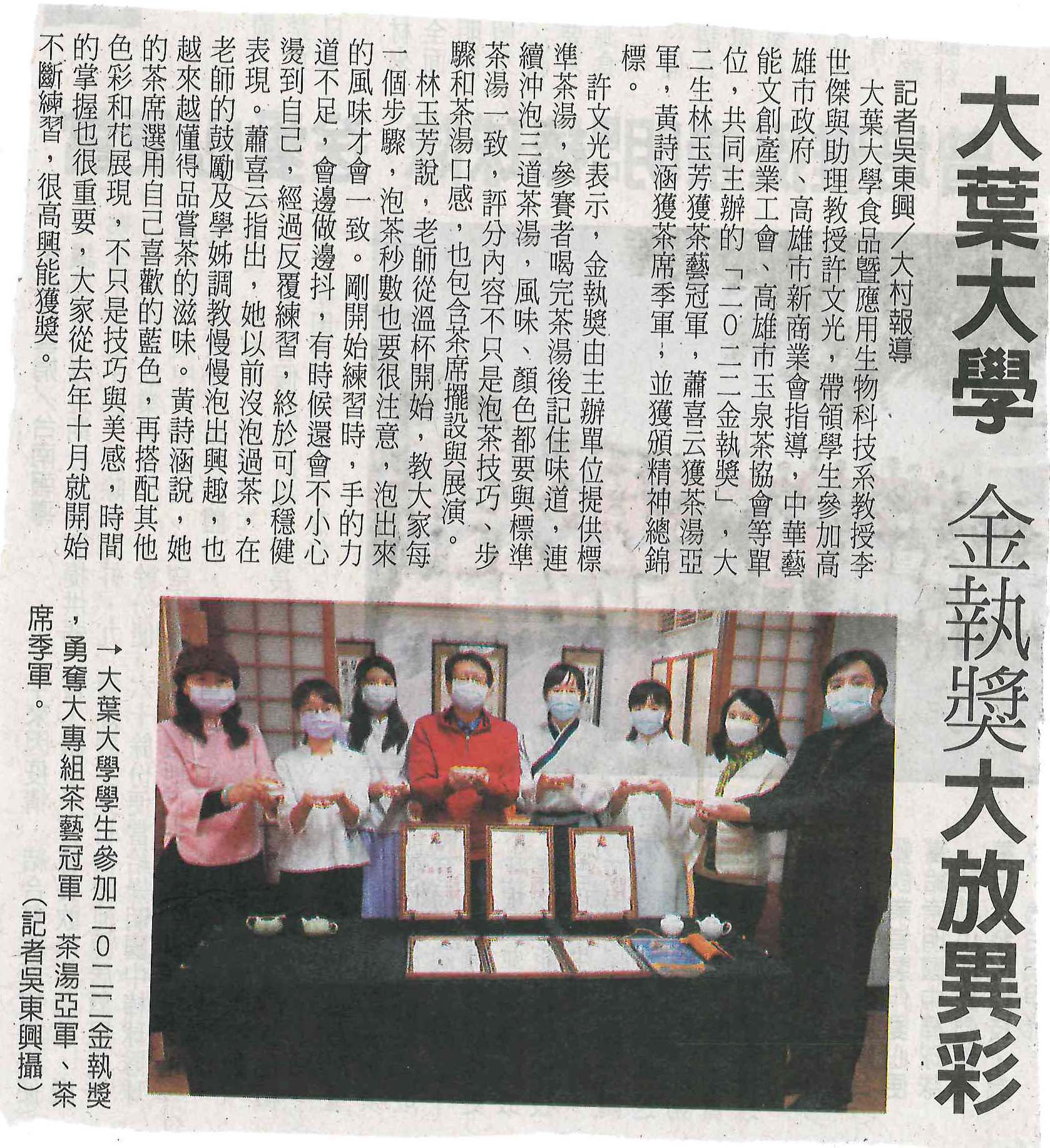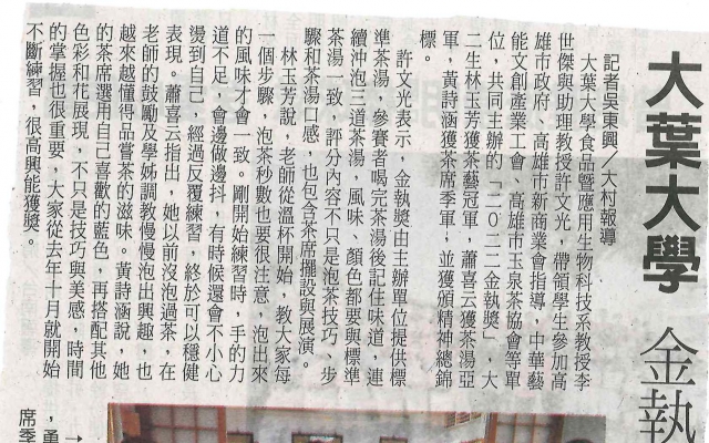 上一則:大葉大學食生系勇奪金執獎茶藝冠軍