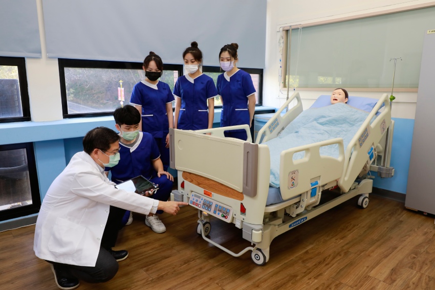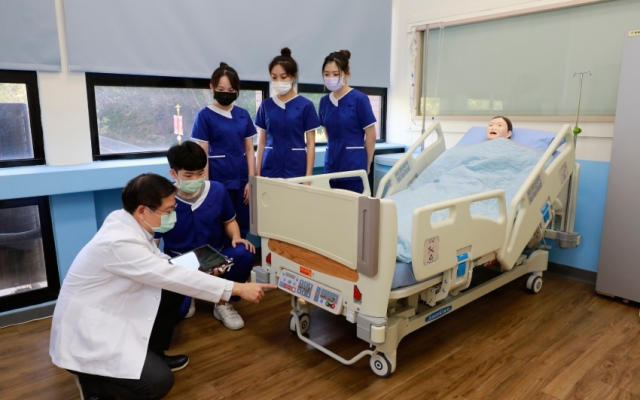 「護理系有國內數一數二的器材設備,讓學生可以在學校就直接跟醫院環境無縫接軌!」楊政議主任指出,大葉斥資打造的臨床情境技能中心(OSCE)對學生的幫助很大,能夠大幅降低人才進入職場後的學習時間,同時更能建立自信、拉高穩定度。此外,護理系的師資都是一時之選,搭配專業設備引導,讓學生更快吸收,像是360度的投影設備,就可以透過投影讓每位學生都看清楚老師的操作手法。技術可以磨、經驗可以慢慢累積,然而一名專業護理人員最重要的還是與病人及家屬互動溝通的能力,因此護理系在大一就將「關懷與溝通」列為必修,並且在整個大學階段都會不斷強調,培養學生同理心,以及在高壓環境下依舊能專業應對的心理素質。