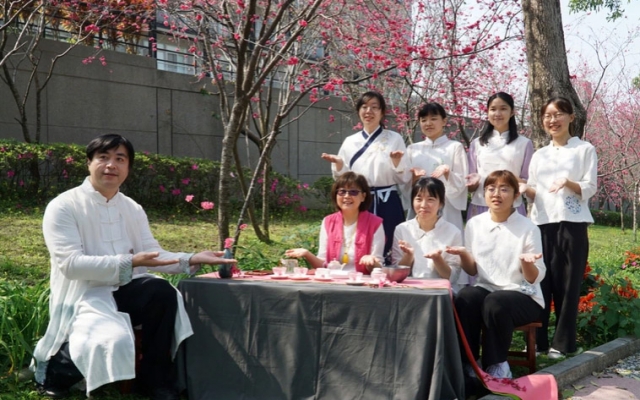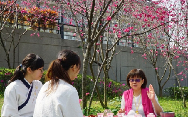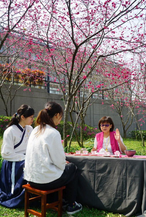 大葉大學櫻花綻放 上課變有趣!師生擺設茶席品茗