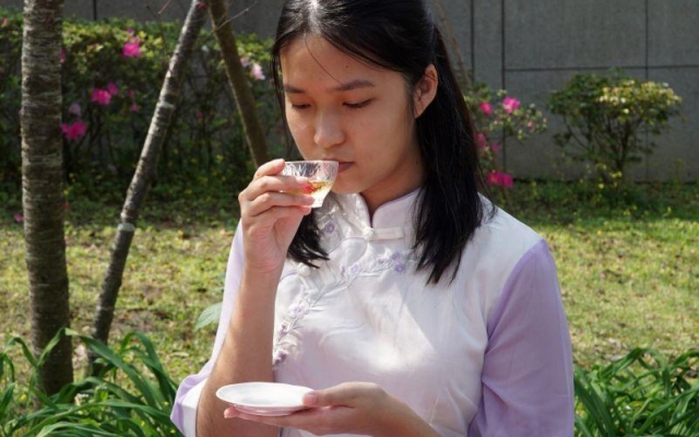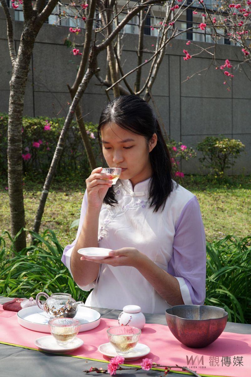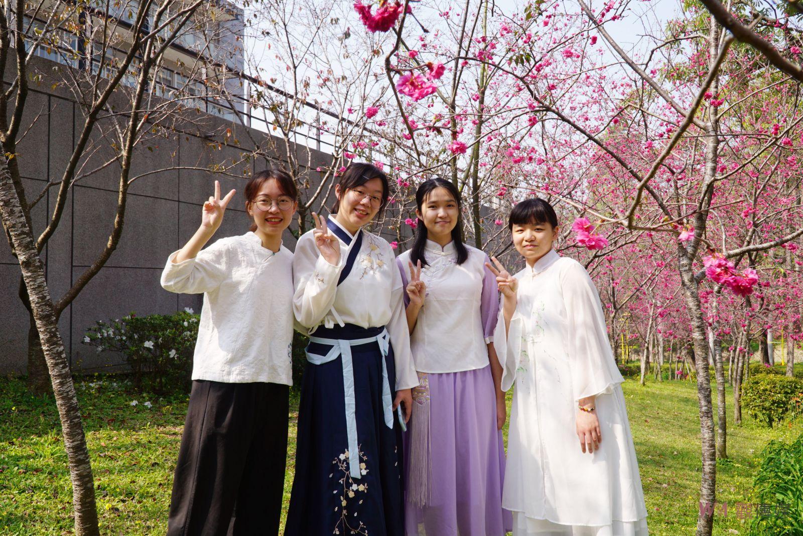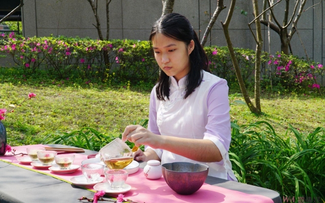 食生系大二生王嘉儀說,系上課程教導大家認識茶藝與茶文化,學習如何泡茶、擺茶席,適逢學校櫻花綻放,林芳儀老師、許文光老師帶領大家在櫻花樹下,運用櫻花元素布置茶席、泡櫻花玫瑰茶,欣賞櫻花美景,同時感受茶藝文化。