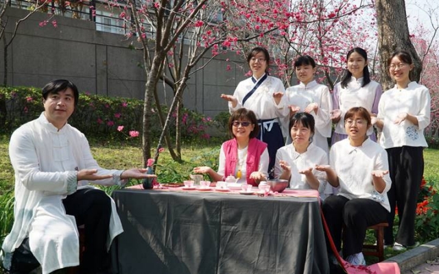 大葉大學食生系大二生王嘉儀說,系上課程教導大家認識茶藝與茶文化,學習如何泡茶、擺茶席,適逢學校櫻花綻放,林芳儀老師、許文光老師帶領大家在櫻花樹下,運用櫻花元素布置茶席、泡櫻花玫瑰茶,欣賞櫻花美景,同時感受茶藝文化。
