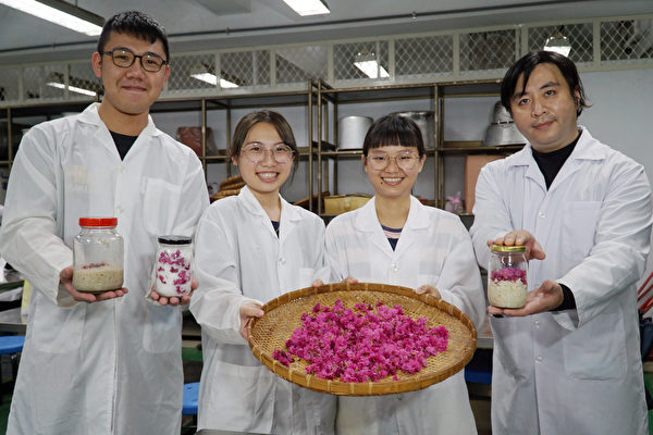 大葉大學校園櫻花盛開,食品暨應用生物科技學系「酒類釀造及實習」課程結合學校的櫻花特色,帶領學生製作鹽漬櫻花、櫻花甜酒釀,透過實作認識食品加工。