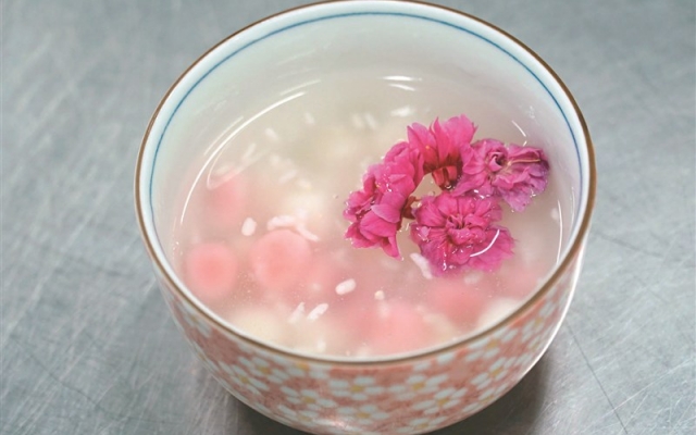 許文光表示,製作櫻花甜酒釀要先將糯米蒸熟,放涼到體感溫度,在糯米中加入麴菌混合,藉著跟櫻花一起放入罐子封存,大約一周後就可用櫻花甜酒釀煮湯圓,有興趣的民眾也可以直接買市售的甜酒釀,先將湯圓煮熟,撈起備用,另拿一個鍋子煮酒釀甜湯,再將湯圓倒入酒釀甜湯中,放入新鮮櫻花即可。