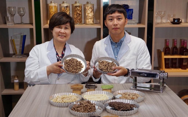 李陳薳說,過去薑葉算是農業廢棄物,不過薑葉有抗癌、抗發炎、降血指的作用,另外月桃葉則有抗氧化特性,因此開始投入配方製作,在兼顧口感、風味、質地,以及GI指數下,成功研發出兼具美味與健康的麵條配方。