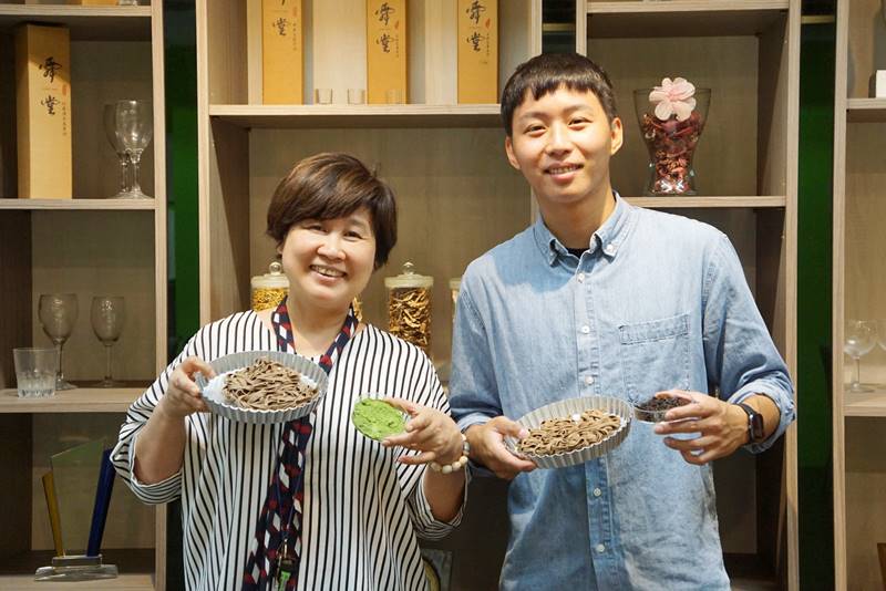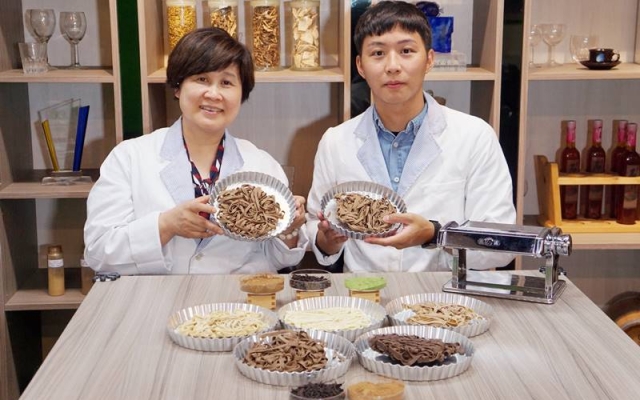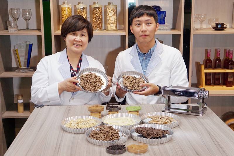 李陳薳說,在宋祖瑩老師的指導下,他先探討原料特性,實驗確認植物萃取物具備降血糖潛力後,緊接著開發麵條,一方面測試不同配方的GI值,另一方面針對口感、風味、質地進行官能品評,選出兼具健康和美味的麵條配方。