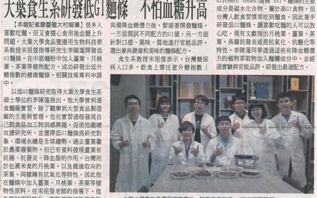 大葉食生系研發低GI麵條 不怕血糖升高