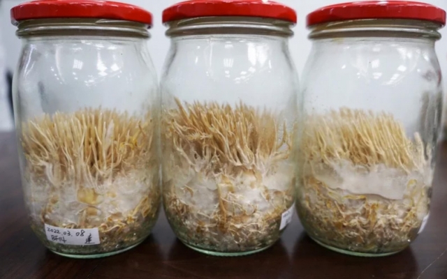 大葉大學創新育成中心主任、食品暨應用生物科技學系副教授吳建一說,蟬生在自然環境中約需1年時間成長,系上實驗室2013年投入研究,以五穀雜糧栽培在實驗室栽培,發現的蟬花菌株於2014年成功研發蟬花子實體栽培技術,大約只要兩個月就能採收子實體,不僅大幅縮短生長時間,實驗室提供安全衛生的環境控制培育出品質穩定、全安無毒的蟬花。