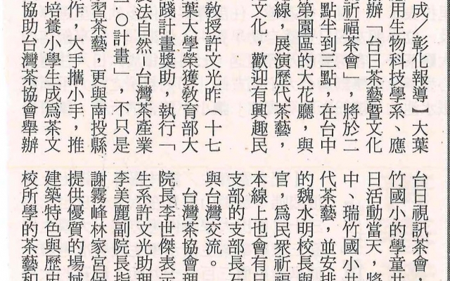 上一則:大葉大學協辦台日視訊茶會 23日下午宮保第園區展演茶藝